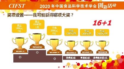 本次大赛共设置八项奖项,十七个获奖名额,获奖团队均有机会参观李锦记酱料集团中国区总部研发体验中心,前三等奖及优秀组织奖的参赛团队各派一名代表参加于10月在陕西西安举办的中国食品科学技术学会第十七届年会颁奖典礼。