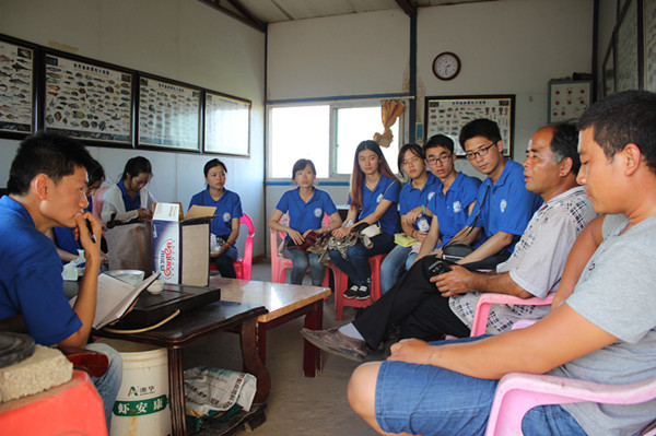 下午,实践队来到南美白对虾养殖基地,实地考察虾的养殖情况,与养殖户进行深入全面交流,了解当地对虾养殖优势及其存在的问题,针对性地提出解决途径。并为正大集团推广先进的养殖技术,以期为当地养殖技术的进一步推广献计献策,受到养殖户的一致好评和热情款待。