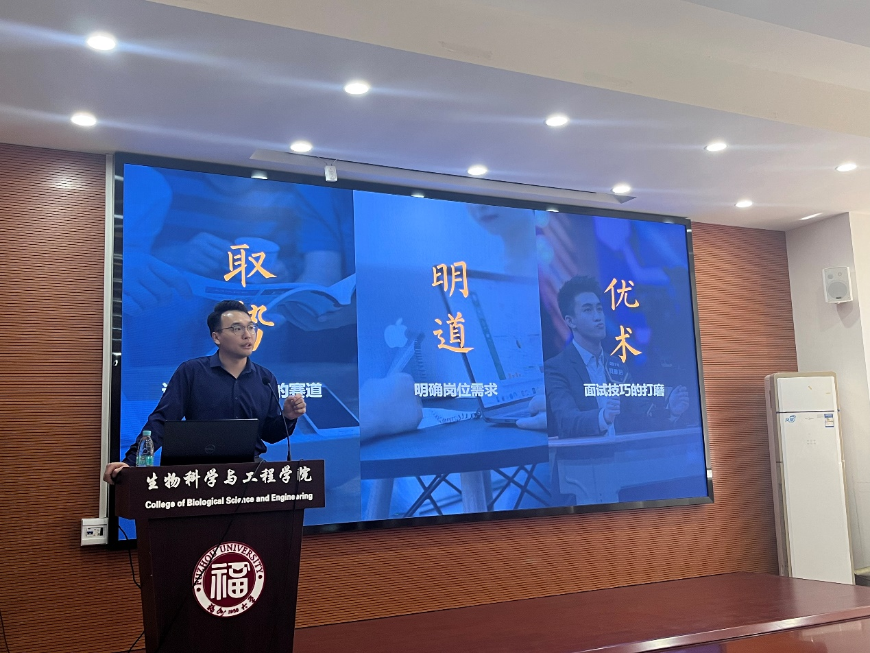 于3月29日下午14:00在生工北楼柏物产厅开展了《面试技巧培训》辅导活动。本次活动邀请到厦门建发弘爱人力资源部叶增佳经理为毕业生开展培训,2020级本科生及2021级研究生参与活动。