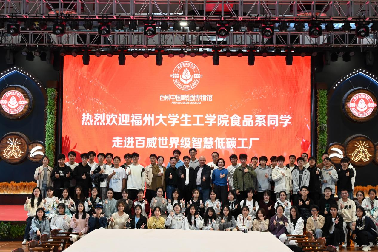 为帮助食品科学与工程专业新生深入了解专业前沿动态与产业发展实况,巩固专业思想,增强专业认同与自信,2025年11月20日,在院党委书记李礼建、副书记曹仁秋、食品系主任张晨教授、院团委副书记张凌拓、新生辅导员杜美佳的带领下,2025级食品科学与工程专业65名新生赴莆田开展了为期半天的沉浸式专业研学活动。师生们先后参访了百威雪津啤酒有限公司与福建省红太阳精品有限公司等两家食品领域重点企业,旨在通过实地走访,将课堂理论知识与产业实践紧密结合,激发学生学习热情与创新思维。