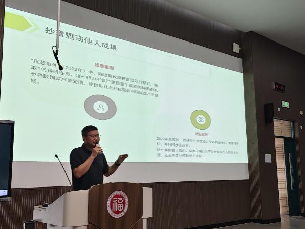 ”讲座。系列讲座从前沿学术内容与科学道德规范双重维度,通过深入浅出的讲解和剖析,引导研究生深刻认识到科学道德不仅关乎个人声誉,更是科学进步与社会福祉的重要保障。帮助研究生树立正确的学术价值观,掌握严谨的科研方法,强化在科研全过程中“重操守、守规矩、勇担当”的品格自觉,营造风清气正的学术生态,打造诚信学术共同体。