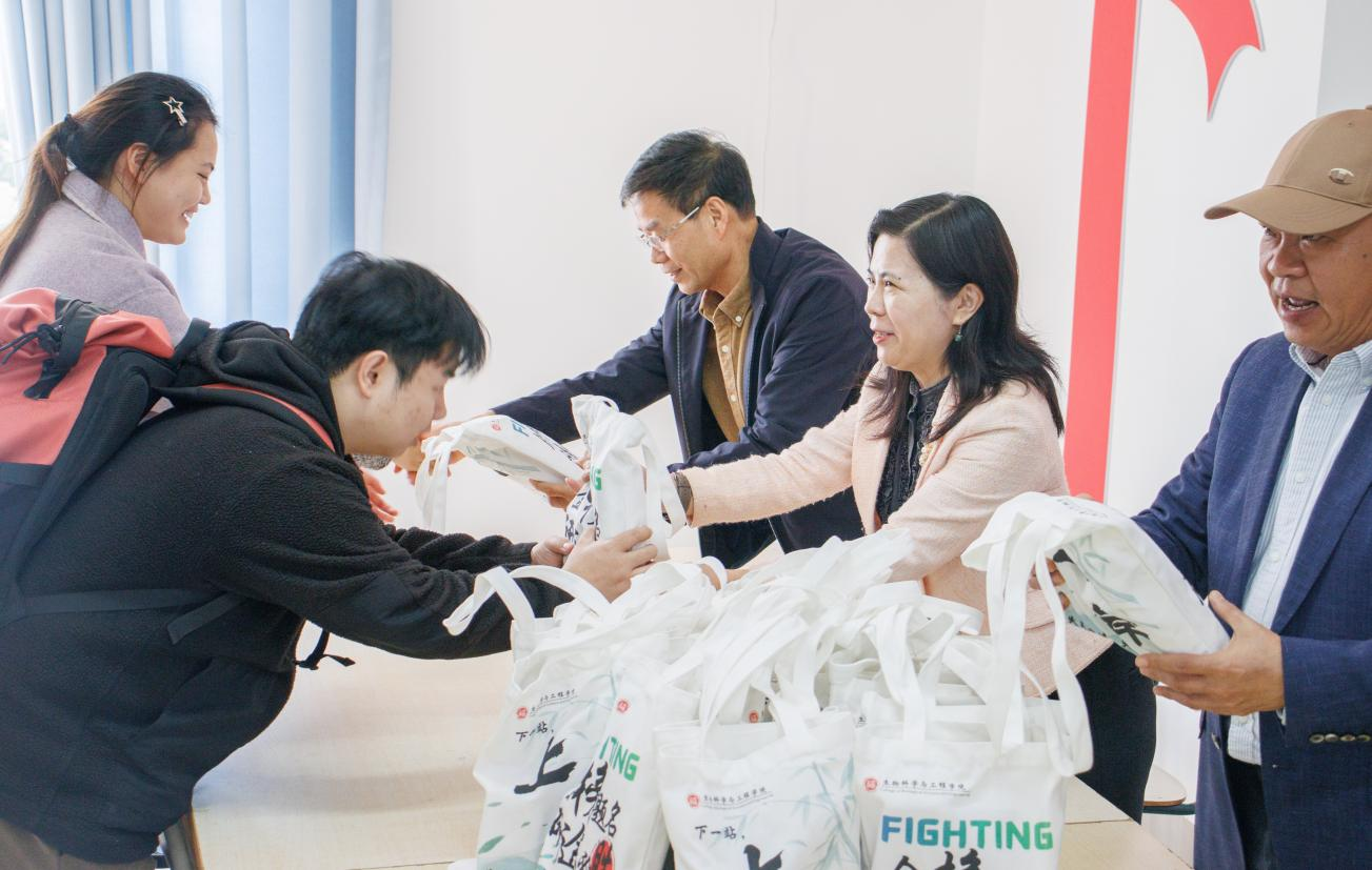 在旗山校区9号楼3楼学生学业发展支持中心开展考研暖心送考活动,院党委李礼建书记、院长汪少芸教授、院党委曹仁秋副书记、副院长王航副教授及院团委副书记张凌拓老师为2022级考研学子送上印有“上岸”“金榜题名 研途必胜”等标语的“考研大礼包”,并送上最真挚的期许与鼓励。
