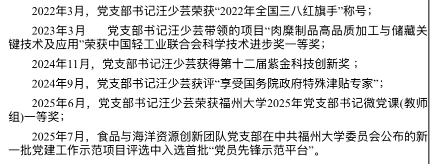 党支部工作“立项活动”一般资助项目《实施“三创三新”工程,构建党建引领下的高质量科技创新立德树人体系》,成功入选校首批“党员先锋示范平台”和第三批“党建工作样板支部”。党支部书记汪少芸深耕党建与思政融合,其主讲的微党课荣获欧冠直播