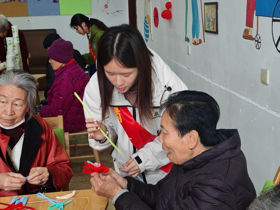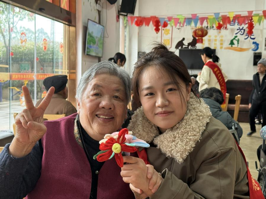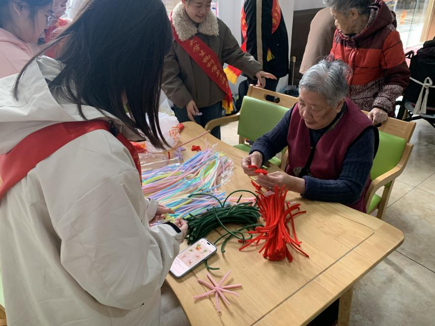 活动现场,志愿者们主动与老人们唠家常、询近况,让养老院里满是欢声笑语与青春活力。
